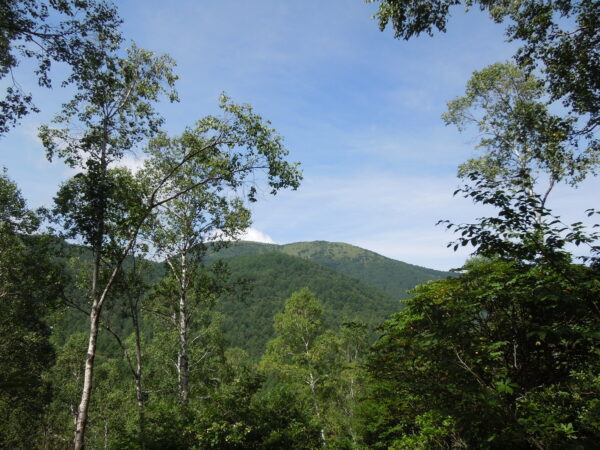 8月17日、嬬恋村の行事で、アサギマダラのマーキング調査に参加しました。村役場からマイクロバスに乗って、大笹街道を通り、桟敷山へと向かいました。村役場のN様に安全運転していただいて、窓からゆったりと風景をみながらM先生のガイドを聴かせていただきました。自分が通っている道が江戸時代の主要な道路(一部は並行している道)と思うと感慨深かかったです。また、2019年の台風19号のときの川沿いの被害の様子についても教えていただきました。