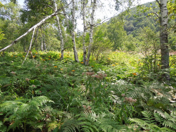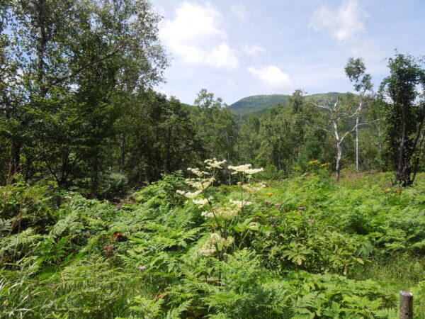 バスを降りて、アサギマダラがいるところまで鳥の声(ホシガラスなど)を聞いたり花を見たりして登っていきました。花が秋の花に変わっていました。