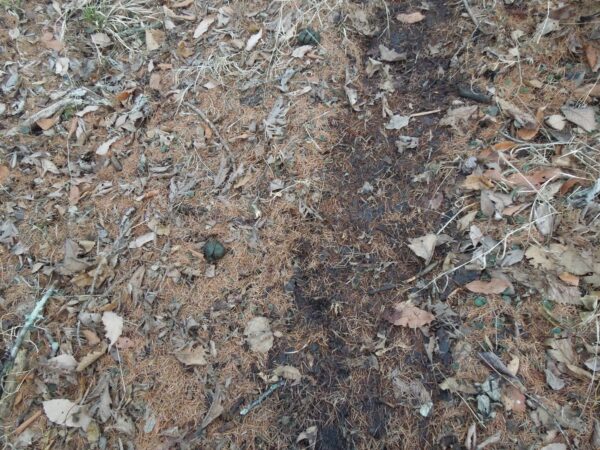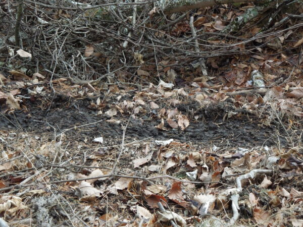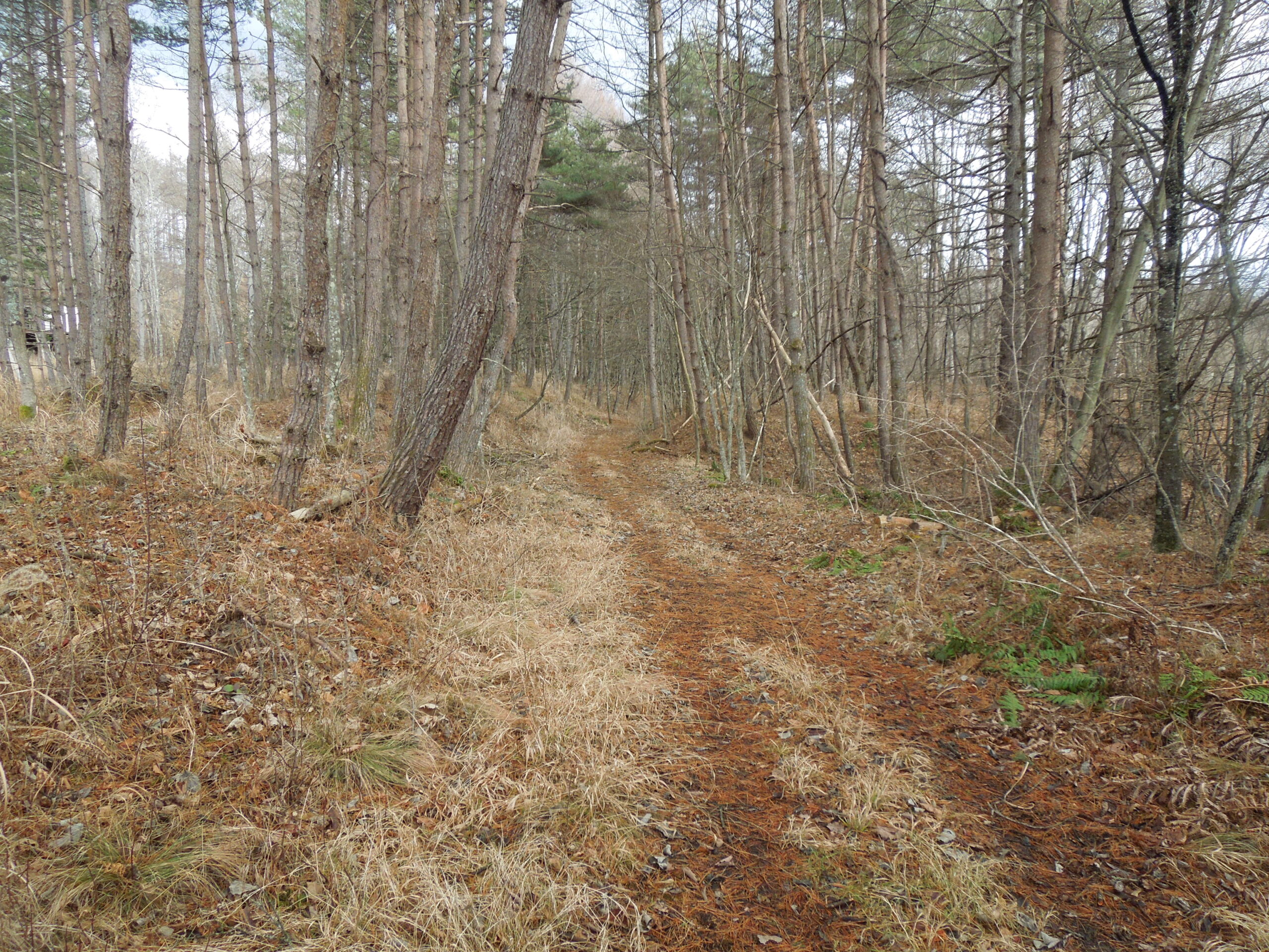 これは鹿の足跡でできた道。糞もあるので、間違いなし。