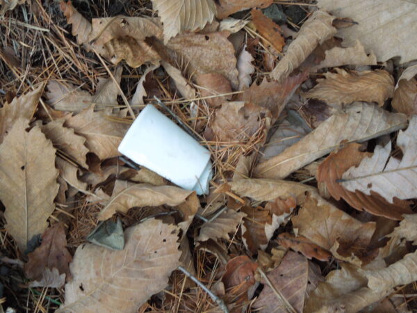 線路跡はパラパラと石が残り、電線の碍子も落ちてました。昔の人が投げ捨てたと思われる空き缶や瓶は、私が生まれる前のもののようで、それらを見ているとまるでタイムトリップをしているかのようでした。(普段は山に入るときゴミを拾うようにしていますが、今回はそのままにしました。)