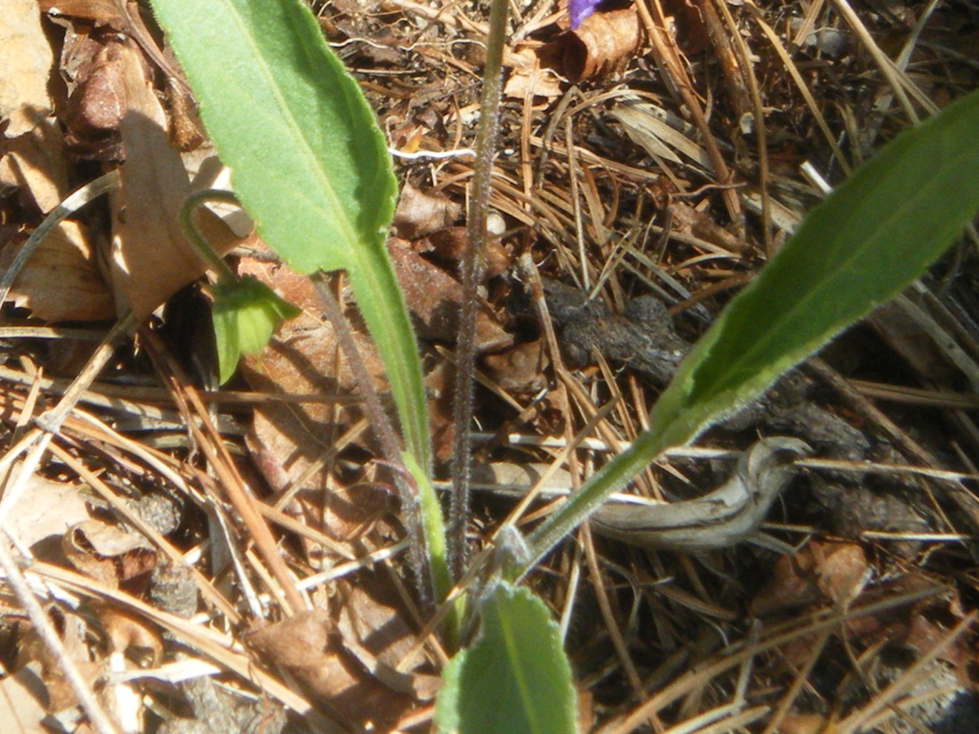 2番はただのスミレです。スミレの特徴は葉っぱ。何といっても細長いです。そして「翼(よく)」が葉の軸にあること。これは典型的なスミレの葉っぱです。こうなれば間違わないです。