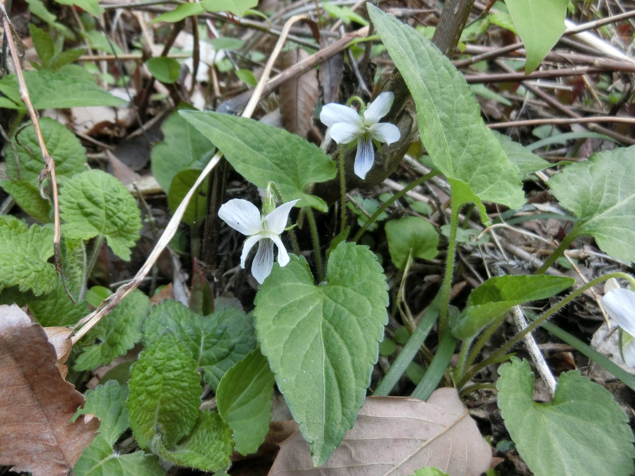 単なる名前だけでなく、そのスミレの特徴を併せて説明していこうと思います。今回は白いスミレ。しかしツボスミレのような小型のスミレは除き、中型のスミレです。