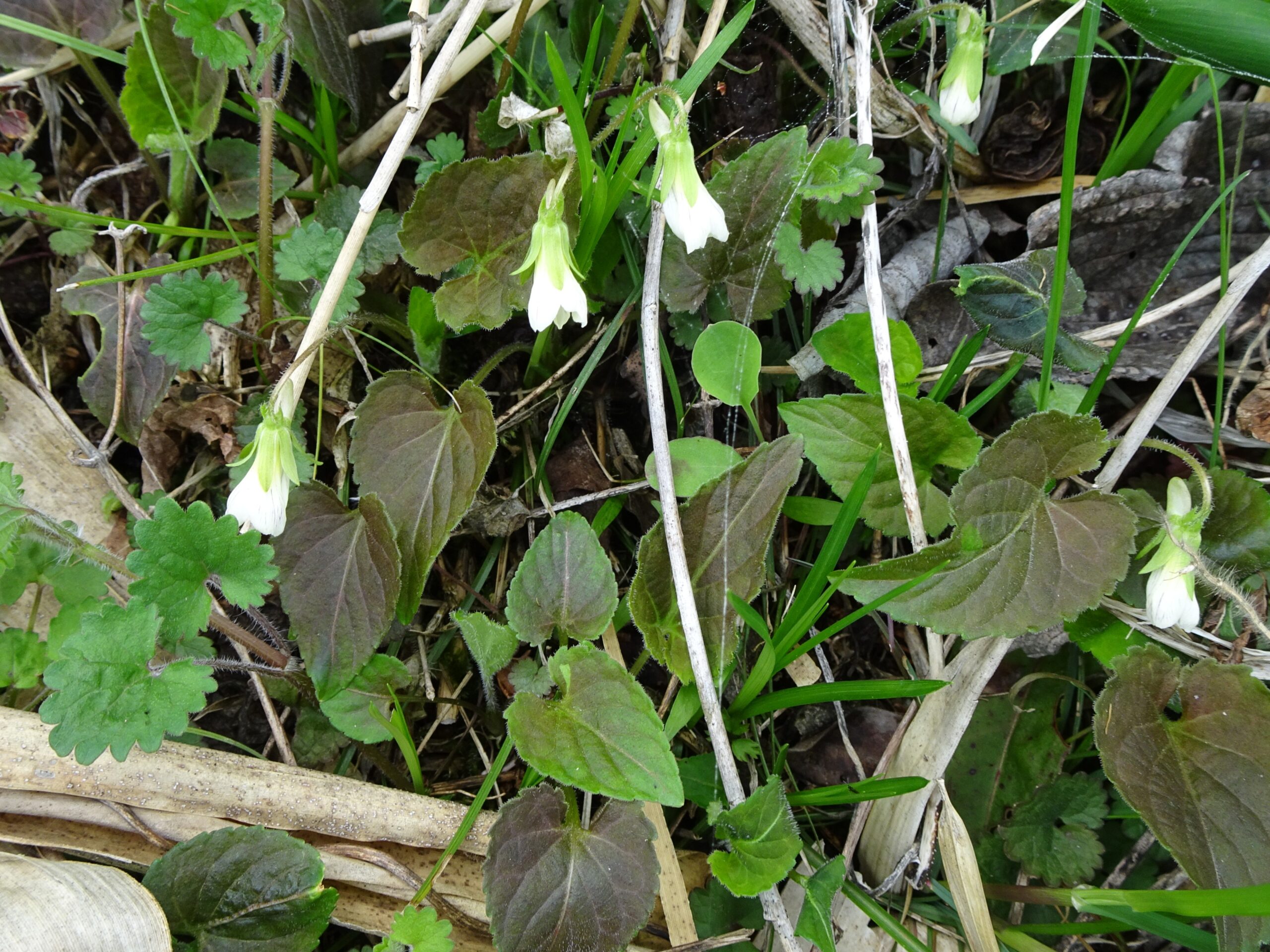 1. 白くて葉が長いハート型ならヒカゲスミレ。