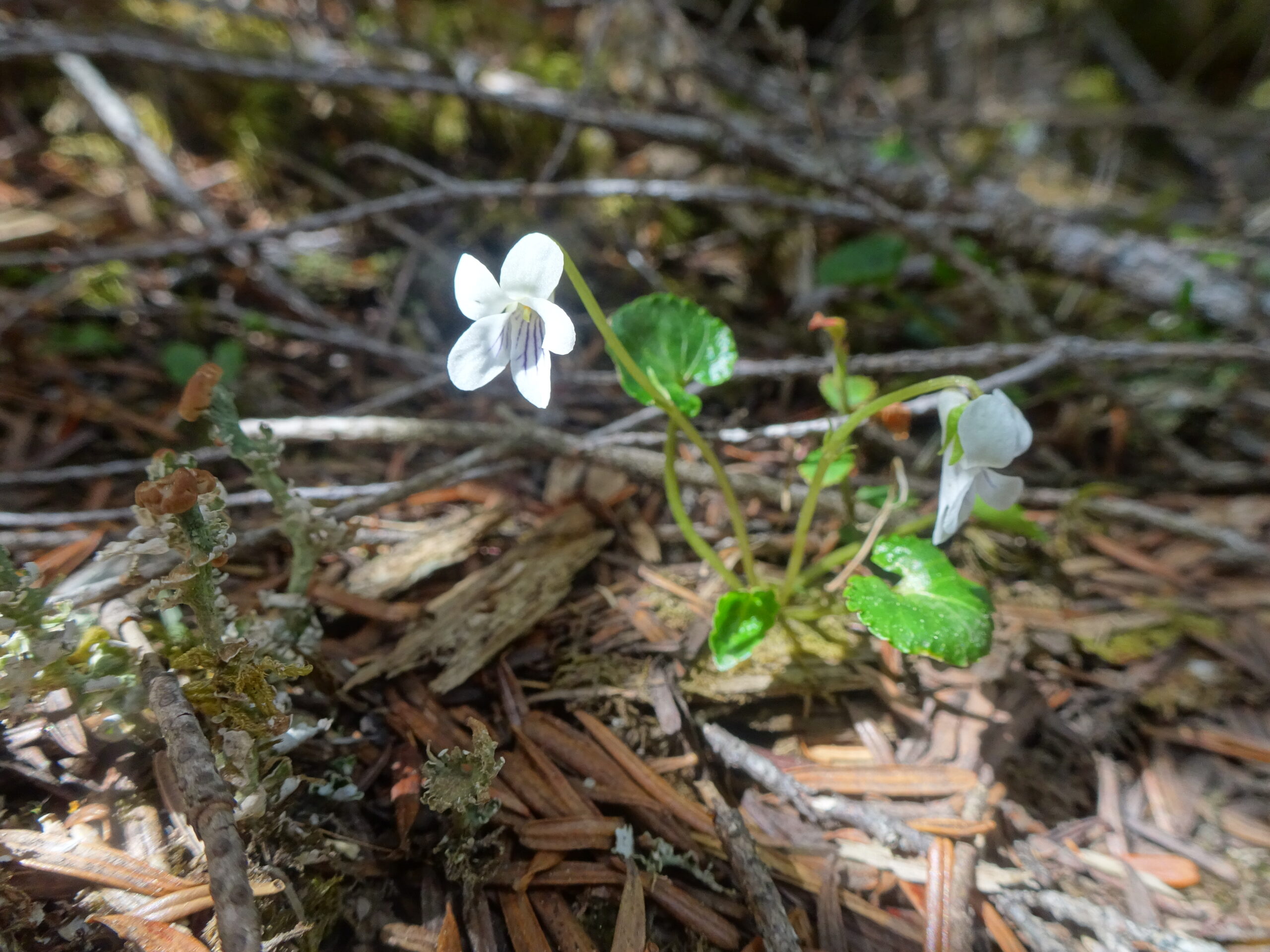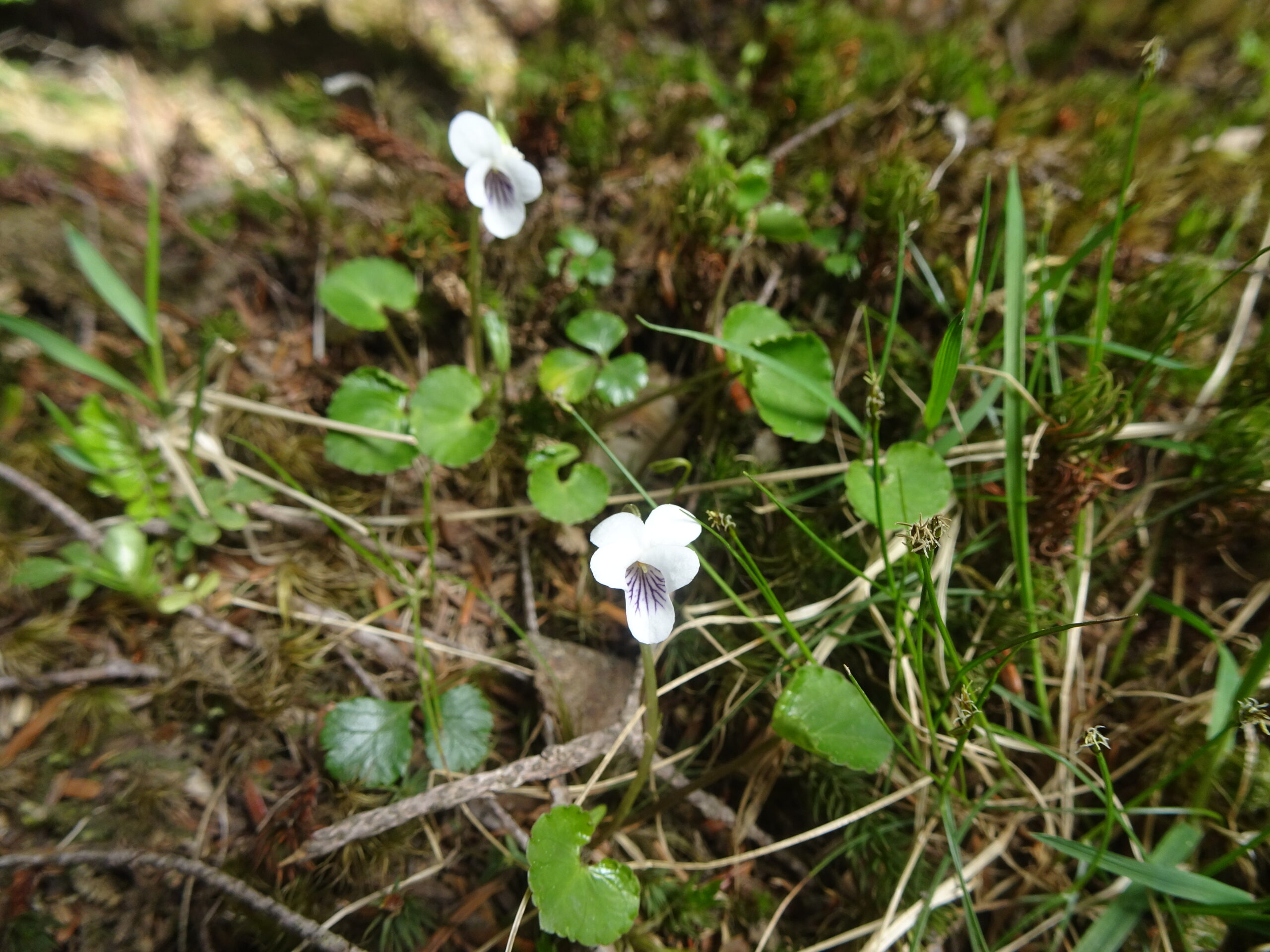 まずイブキスミレですが、どこにもあるスミレでなく、私も一度だけ友人に案内してもらい高山村で見ただけです。とても変わったスミレで、花の時期には地上茎がなく花が終わると地上茎が現れるという特徴があります。雰囲気はタチツボスミレに似ていますね。