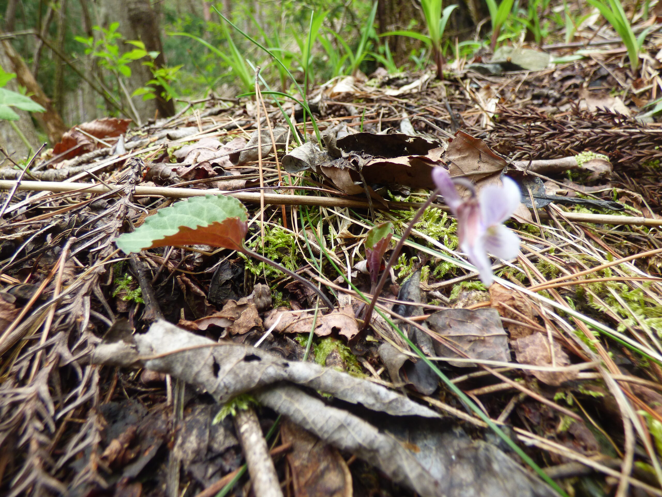 ゲンジスミレは、花が今までに見たスミレの中で一番優雅だったので、これは只者ではないと思いました。きっと名前を知っているはずと思い、ゲンジスミレという名前が浮かんできました。それで検索したら当たりでした。最初は葉っぱの裏ばかり見ていて、シハイスミレの仲間と思いましたが、先生が違うとおっしゃったので花に着目しました。