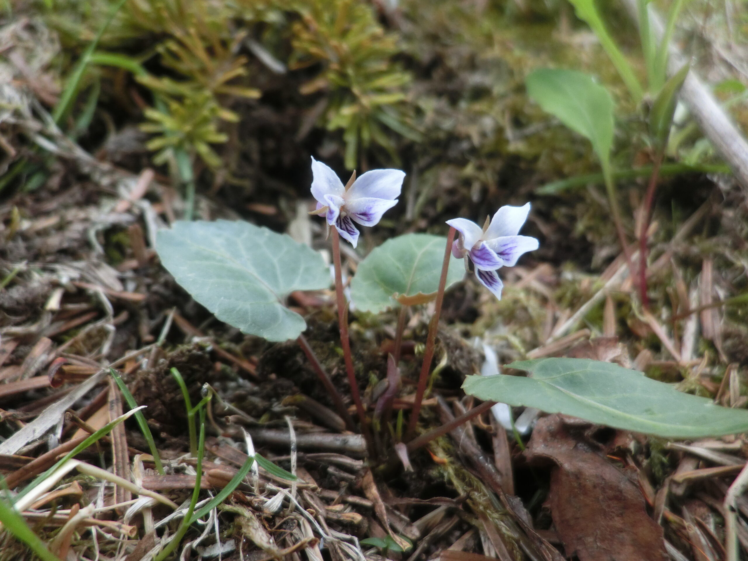 1. ツボスミレと違って花が紫色を帯びる。