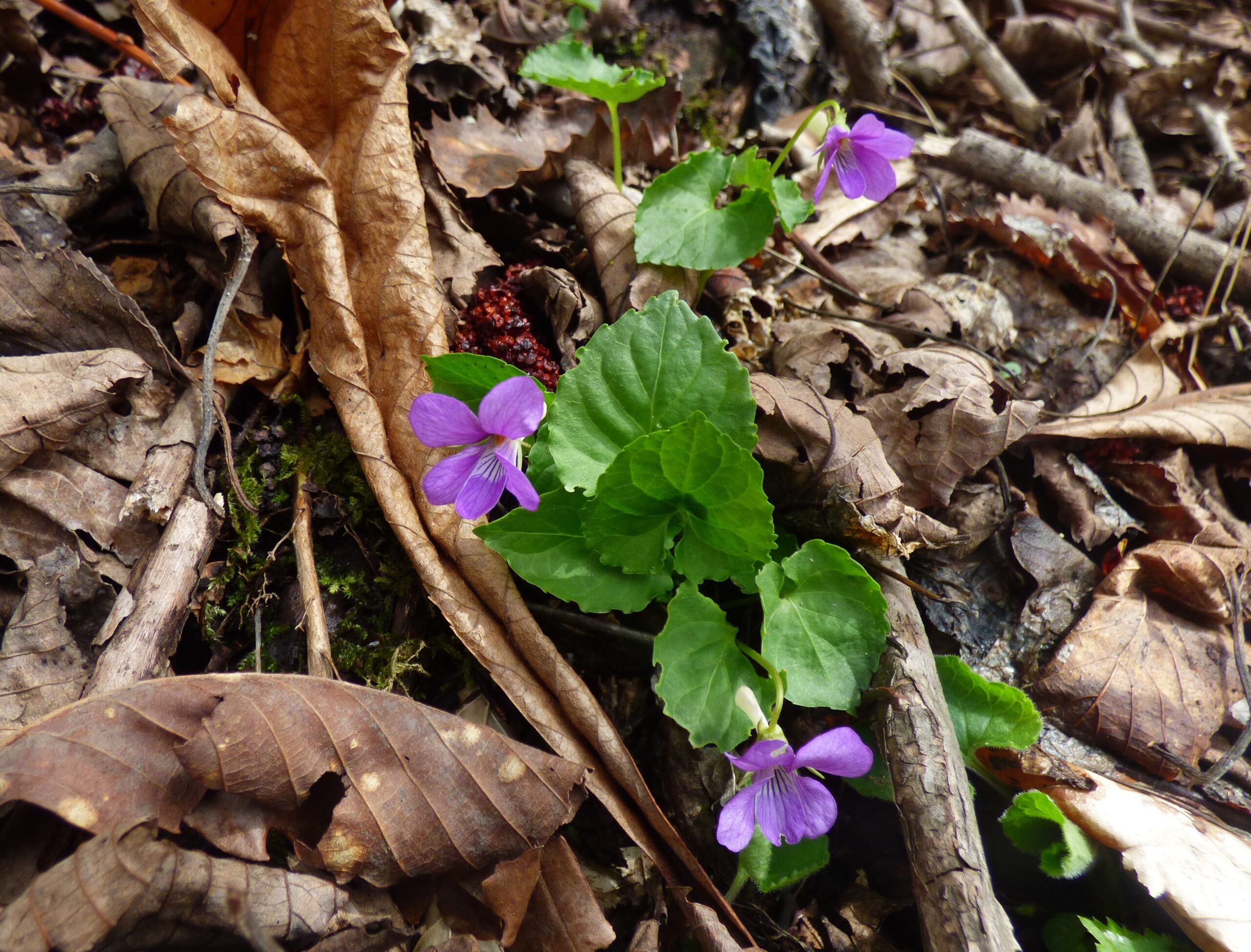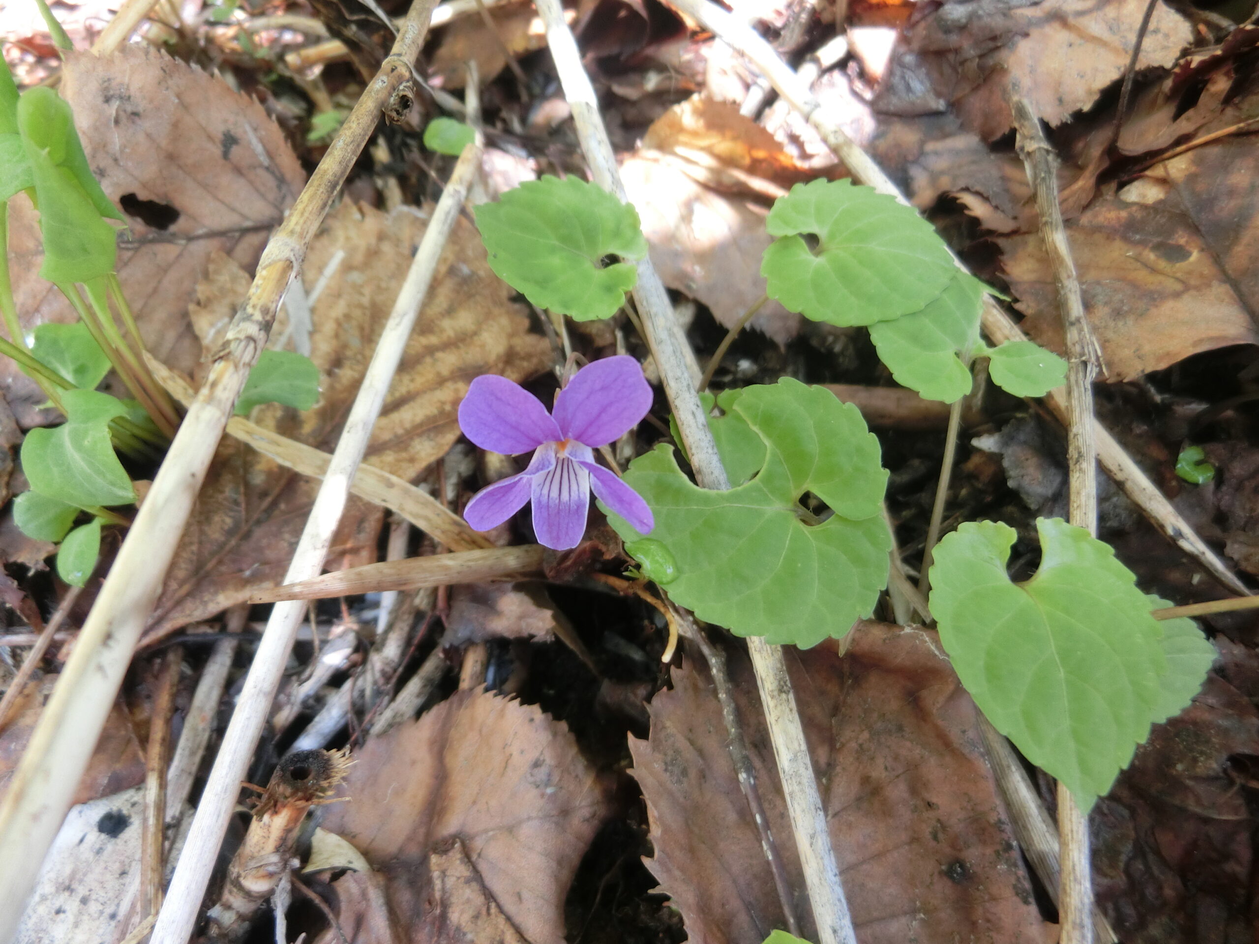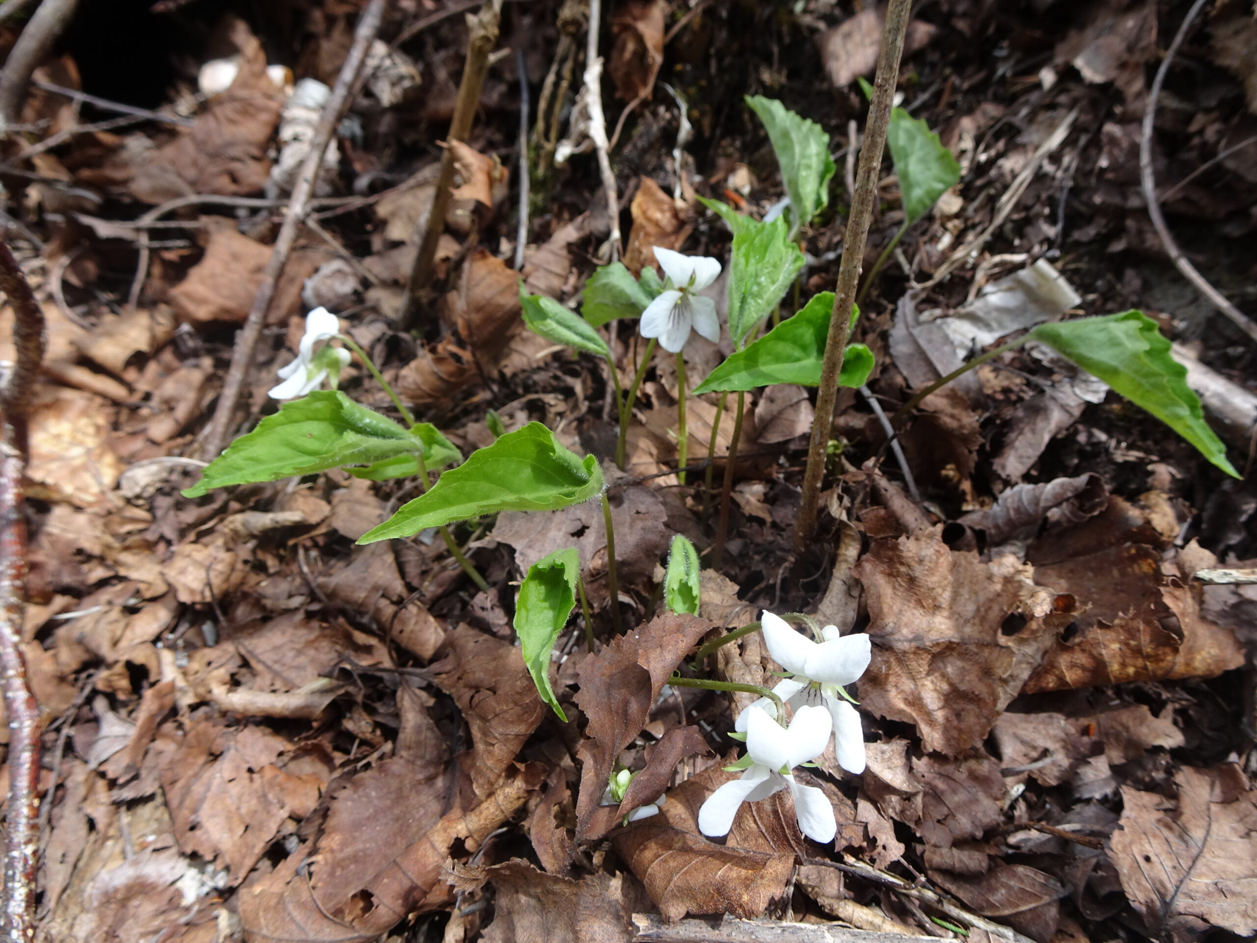 2番はミヤマスミレです。このスミレはやや高い所で見られるスミレで、浅間山周辺では少ないスミレです。野反湖に行くとたくさん咲いてます。ただ鹿沢の休暇村に少数ですが咲いていて、観察会でも出てきました。