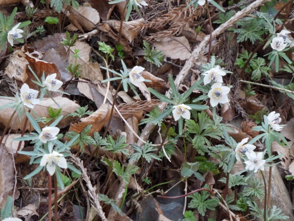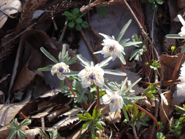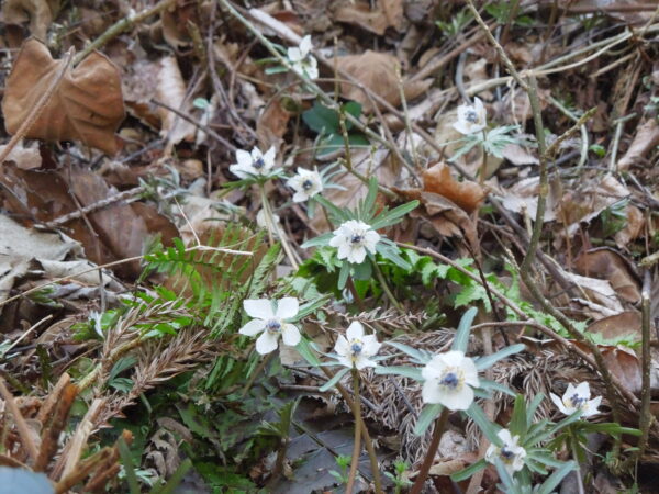 しかし、セツブンソウはまだ見たことがなく、いつか見に行きたいけれど今年は難しいだろうと思ってあきらめていました。植物愛好会の方からの情報を見られて、嶋村先生が千曲市戸倉に見に行こうと誘ってくださいました。そこは長野県最大のセツブンソウ群生地です。