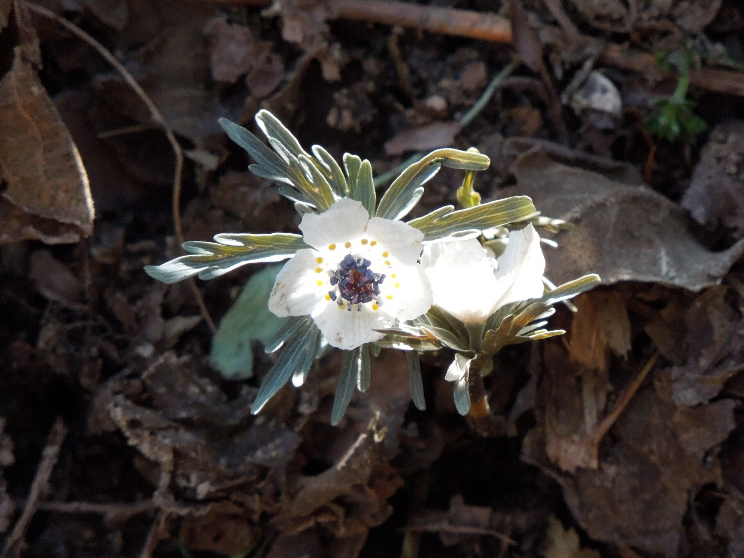 セツブンソウと紛れて、ときどきカタクリの葉っぱが見えました。