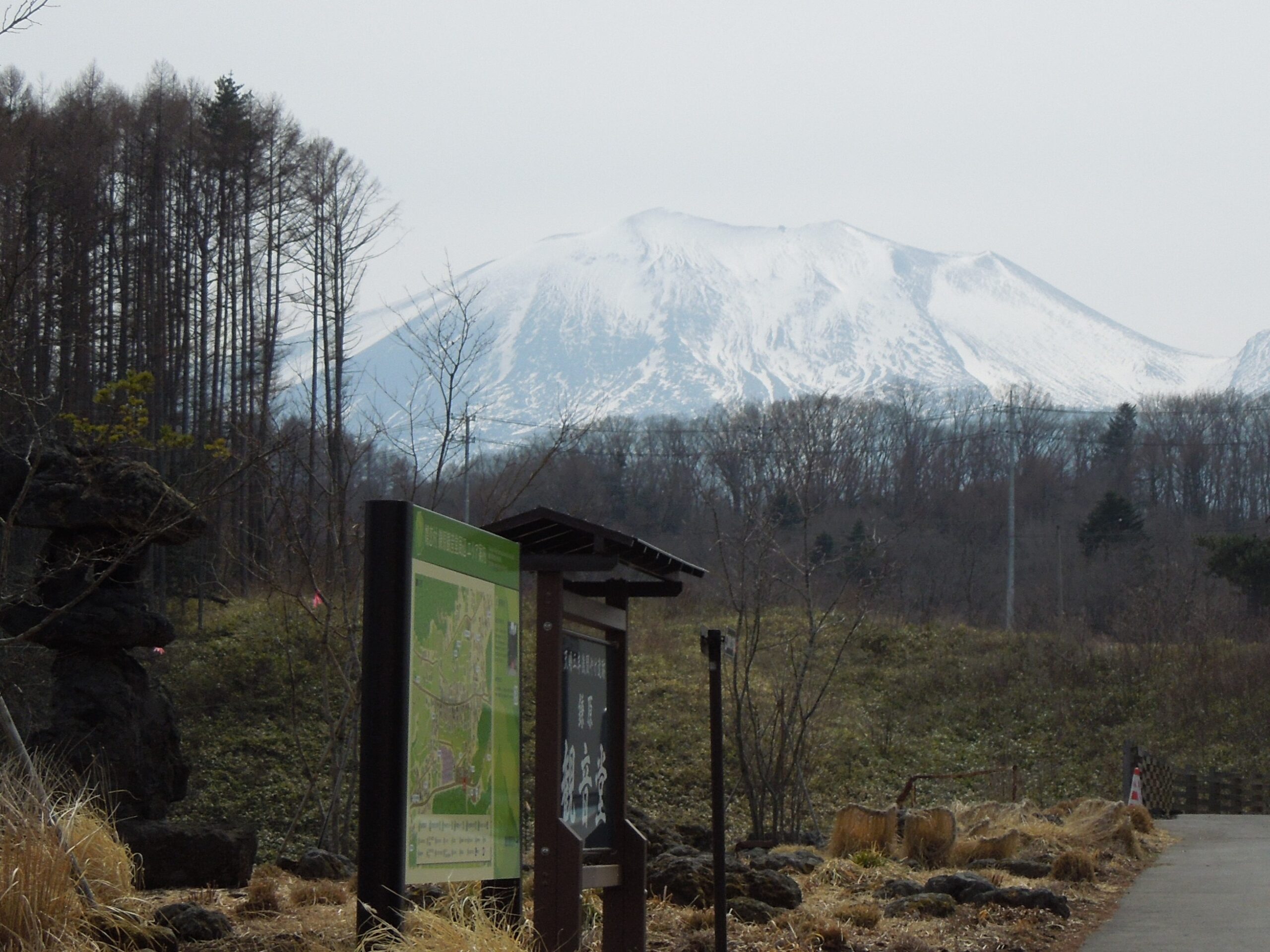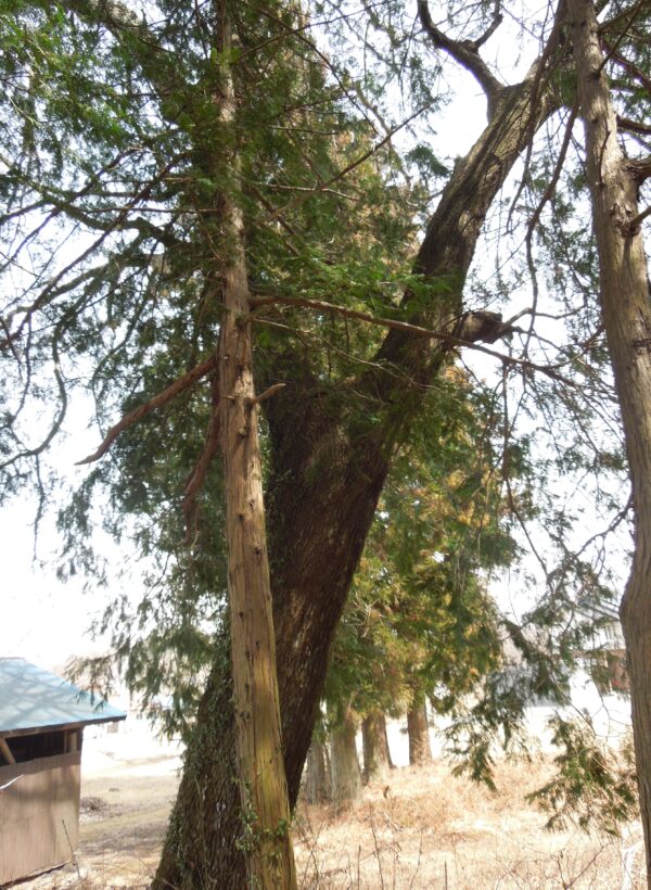 天明を生き抜いた鎌原神社のご神木を見に行き、幹周を測定しました。公民館の横に「におうけやき」(幹周4m70cm)、「かつらの木」(幹周4m40cm)があり、神社の北側に「でぇだらもみ」、「ぶとっけやき」(幹周6m)があります。また宮崎先生によると看板はないけれどカエデも天明を生き延びた木とのことでした。(看板のある「なんかからまつ」(幹周2m30cm)については樹齢が不明だそうです。)また、それぞれの看板に書かれてある樹齢は40年前のことなので、これらのうちの2つの木は樹齢400年近くになっていることになります。