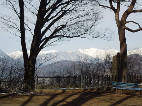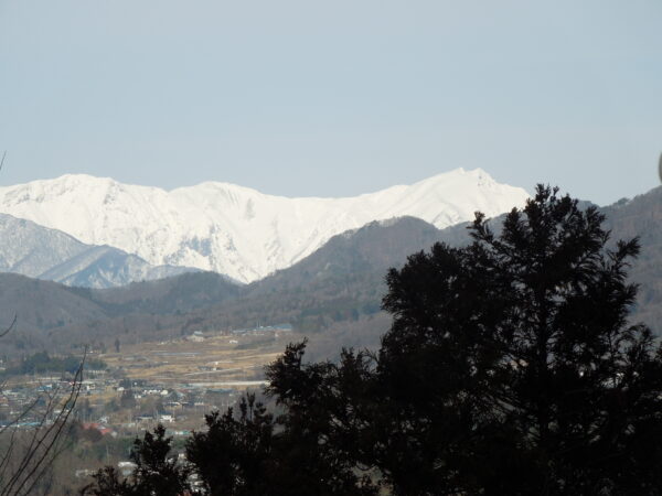 沼田城付近から真っ白な谷川連峰が見えました。谷川連峰は標高がそれほど高くありませんが、日本海側なのでたくさん雪が積もるのだそうです。
