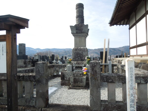 小松姫のお墓、宝篋印塔。付近には真田家や、キリシタンであった高野一族のお墓もありました。