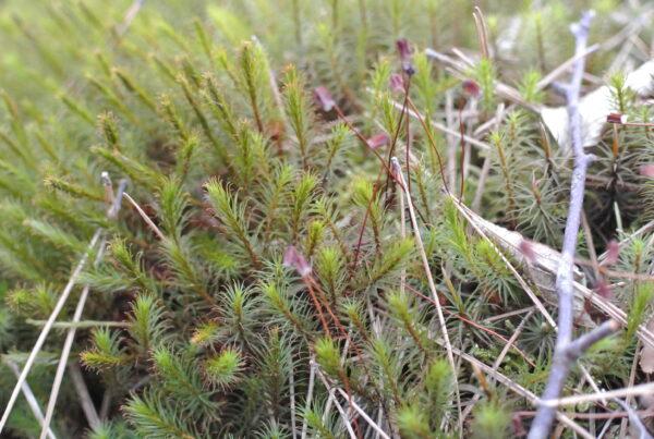 私の森は、少しずつ春を迎えていますが、花はほとんど咲いていません。ずっと待っていたガンコウランの花が咲きました。昨年は見落としてしまったので、今年は毎日、まだかまだかと観察していましたが、毎日見ていたところではなく、日当たりの良いところで咲いていることに気付きました。雄株と雌株がありますが雌株は少ないです。