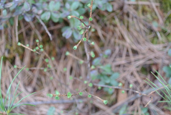カラマツの葉芽(幼木も近くの親と同じように葉っぱが付いています。)