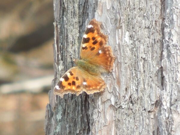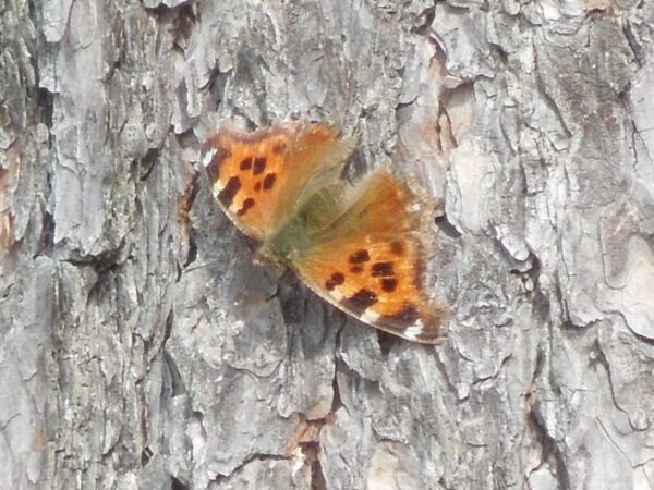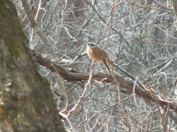 今日は、昨日から花は増えていなかったのですが、エルタテハ(?)が2頭、小さなアゲハチョウ(?)が1頭いました。鳥は昨日のメンバーにイカル、クロツグミが加わりました。花も緑もあまりないのに、どんどん生き物が増えて森がにぎやかになっていきます。